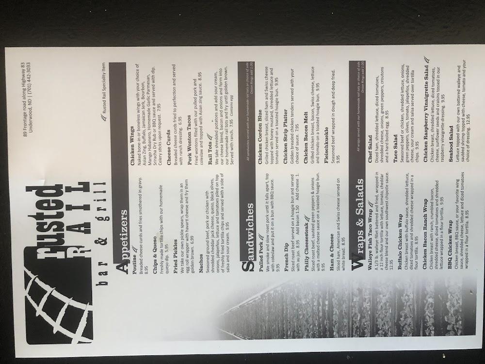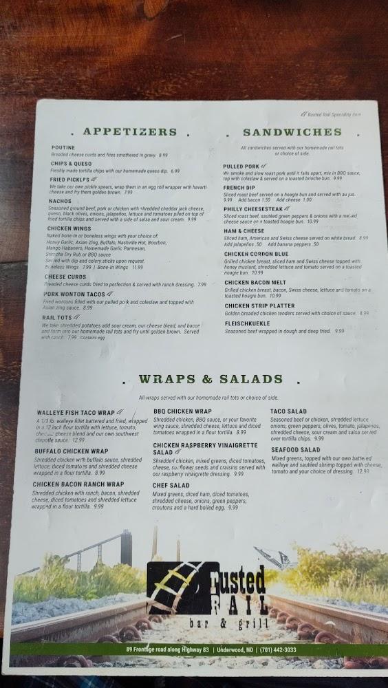 Welcome to Rusted Rail Bar & Grill, your go-to destination for delicious food and a lively atmosphere in Underwood, ND! Our full-service bar and grill offers a mouthwatering menu featuring house specialties like the Rail Tot, juicy burgers, tender steaks, and unique appetizers, all served seven days a week until 10 PM. Enjoy a variety of games such as pool, darts, and Blackjack while savoring our extensive selection of beers and cocktails. With a focus on quick service and local flavors, Rusted Rail is perfect for lunch, dinner, or a casual night out with friends. Join us for an unforgettable experience!