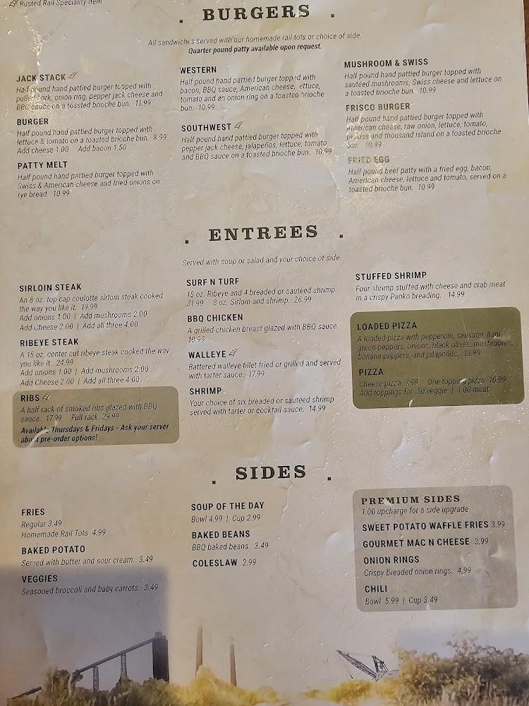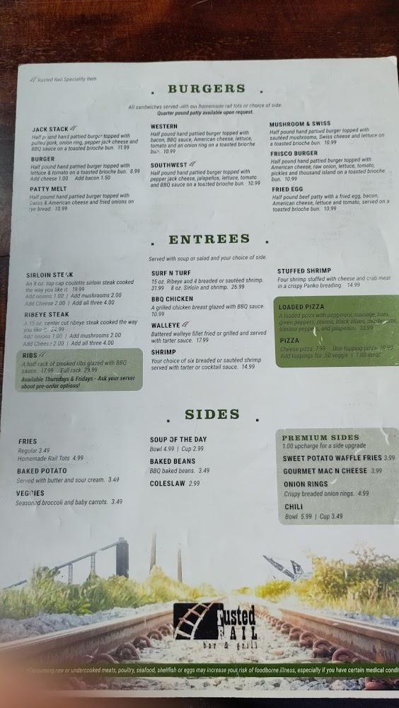 Rusted Rail Bar & Grill boasts a diverse menu that pleases every palate. From hearty burgers like the Jack Stack to tender ribs and sirloin steaks, food lovers will find something they enjoy. Vegetarian options like wraps and salads ensure everyone has a choice.